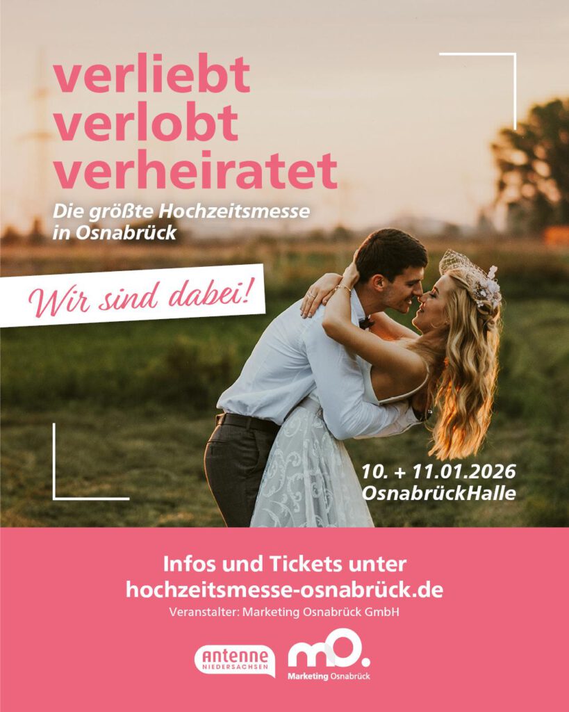 Wir sind dabei! Hochzeitsmesse in der OsnabrückHalle am 10. + 11.01.2026.